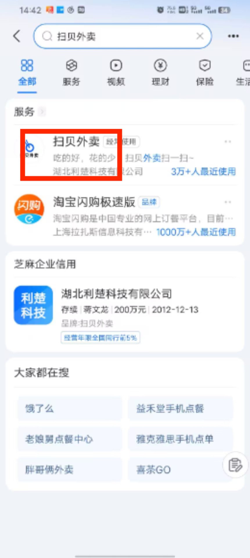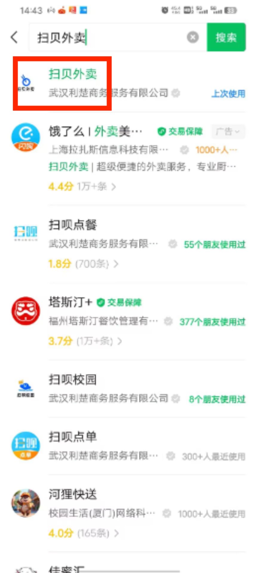 ①"支付宝/微信"小程序—搜索"扫贝外卖"一进入系统